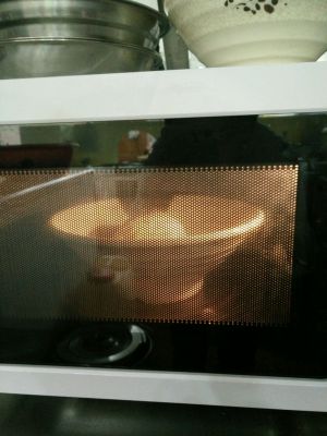 感觉好像没发酵好。没见到那种蜂窝状态,然后微波炉最低的温度两分钟。
