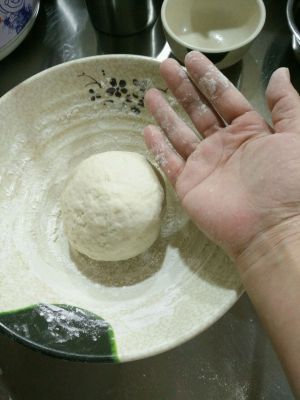 不太粘手为止 然后醒面(面团发酵 叫2~3个小时)因为是刚吃完午饭开始做的,所以醒面时间就去玩电脑吧~缩短醒面时间——讲锅里盛少许水,然后讲煮热,不能煮沸,有点温度就可以了,然后将面团放到锅里盖上盖子,这样发酵30分钟-1小时足够了