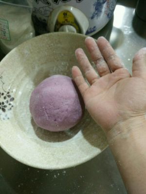 紫色面团也是揉成三光(加了半个紫薯),盖上干净胶袋让它睡半个小时。紫色面团发酵还可以没有进微波炉。