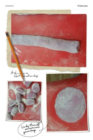 发酵好后,稍加排气,取任意四色面团,分别约20克,搓成长条