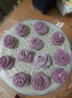 做好的玫瑰花馒头放在一边再次醒发20分钟左右,锅里放水蒸上汽,放入醒发好的馒头蒸20分钟左右,关火后再焖3分钟左右就可以开盖了。