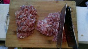 将买来的肉洗干净切条砍成肉沫,也可以在市场买了用机器打碎