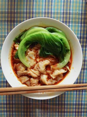 趁热来上一个,抄手柔嫩鲜美,汤汁微辣浓香。