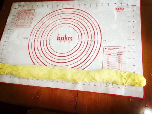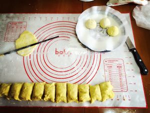 把南瓜面揉开,搓成长条