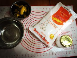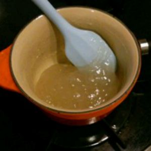 把粉,糖,水放小锅,中大火加热,并不停地搅拌。