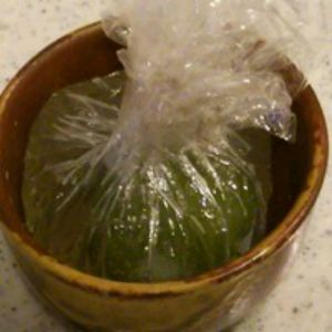 把保鲜膜收紧,扭成团。
