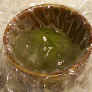 在小酒盅里铺上保鲜膜。
