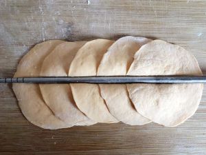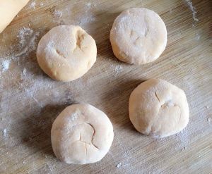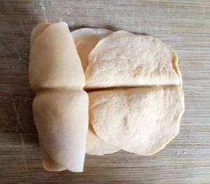 第三步,把小面团干成圆形小面片,如图
