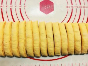 做成大小一样的面团,在面板上揉成半圆形,做好后静置20分钟。