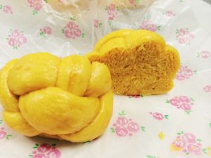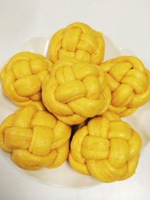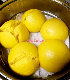 南瓜馒头蒸好了。不知道什么原因竟然开花了。
