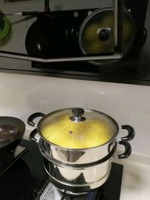 冷水入锅蒸,锅开后转中火,蒸25分钟,关火后静置5分钟,再掀盖。