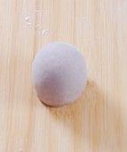 紫米磨成粉与面粉、糖混合备用。将干酵母倒入不烫手的温水中,轻轻搅匀后倒入面粉中