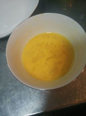 鸡蛋打散,可以加一点点盐。我这是三个馒头,一开始打了三个鸡蛋后来不够,又加了一个,刚刚好