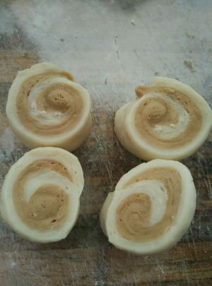 至于黑白馒头就是其实就是把等量的黑白面团分别用擀面杖擀成薄片状