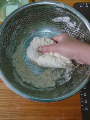 面粉、泡打粉、发酵粉拌匀。逐次加水揉面(干一点的)