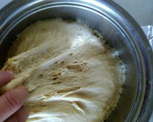 从面包机里取出面团,如果太干稍加水,如果太湿再酌情加面粉揉匀;有必要的话再用面包机"和面"一次