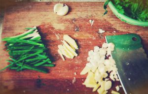 分别把辣椒跟蒜一起剁碎,加入适当的盐,鸡精调味。最后加入上一步的葱油调好。