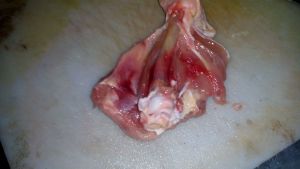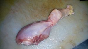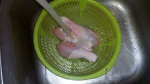 把买来的鸡肉洗干净 拿葱姜蒜 盐 十三香 味素 味上…最好让肉入味!这样吃着才香
