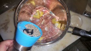 放入料酒,盐,酱油,胡椒粉,腌制一下