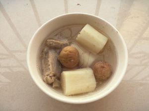 所有食物一起放进锅里,加三分之二的水煮,水开后小火炖一小时,关火,放盐就可食用。