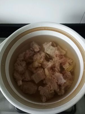 水中加入姜片料酒,冷水放入排骨,焯去血水。