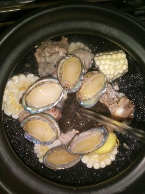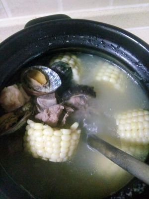 一个半小时以后开大火加盐5克。其他什么不加。出锅汤白白,玉米甜甜,其他香香。地地道道原汁原味