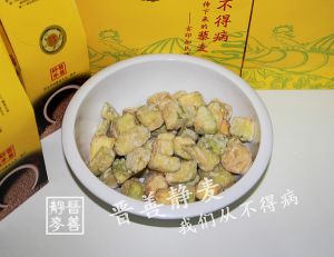 做油锅炸制茄子块金黄,要炸两遍,复炸一遍可以把茄子里的油炸出来,省的那么油腻