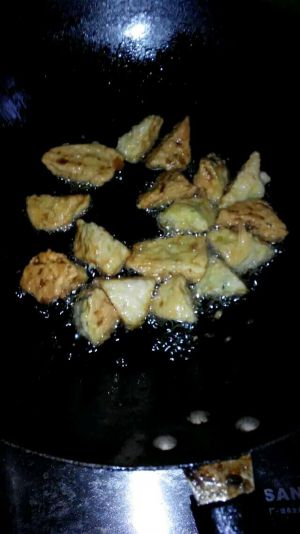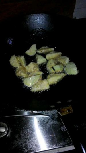 再炸一遍茄子 捞出沥油