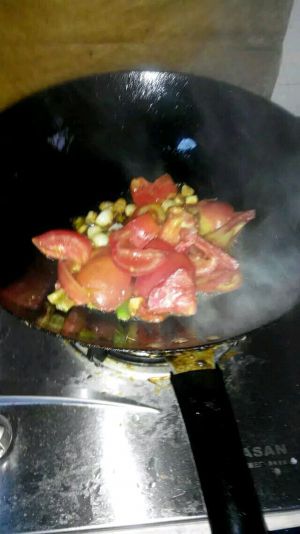 迅速翻炒,加盐,不要等西红柿软酒出锅