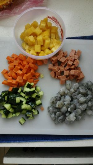 虾和菠萝切碎