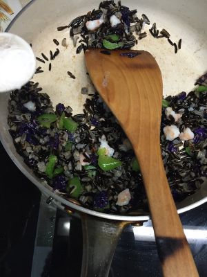 放入炒好的虾仁,再加适量的盐翻炒片刻