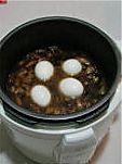 一个半小时后大家可以根据需要放几个已经水煮过的剝壳鸡蛋去卤,然后在炖个一小时