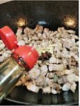 接下来在把五花肉倒入炒成白色再倒入葱酥