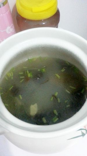 水开后捞掉血沫,加入一小碗冷水继续煮。再次煮开后放入洗净的裙带菜。