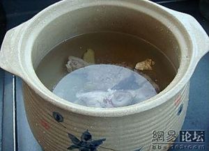 烧开后转小火,加入少量盐,鸡精(可不加,根据个人口味),继续慢慢熬,熬制汤变色可收火。