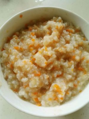 将煮好的菜放入粥里搅拌均匀,可以喂宝宝了