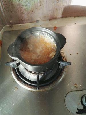 小砂锅放水一锅,放入胡萝卜和土豆煮,时间煮长点,尽量煮软点,宝宝好嚼