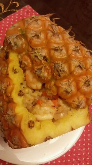 打开锅盖,酸酸甜甜的味道扑鼻而来,菠萝饭就做好了。