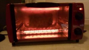 成品出来后,放入菠萝里,进烤箱喽,时间是10分钟