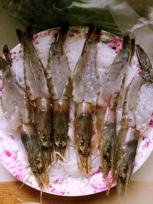 第四步:开始收拾虾。虾清洗干净,剪掉须脚。