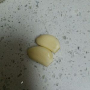在煮鸡肉的时候,开始准备调料。蒜两瓣,绞成蒜泥