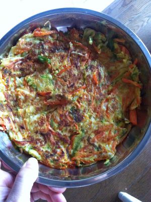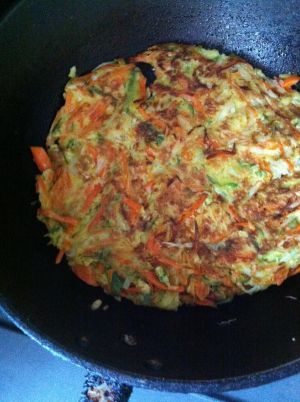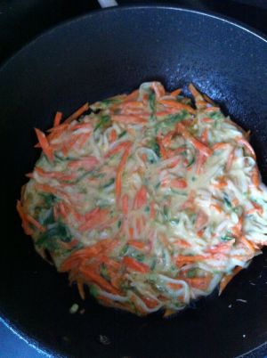 红萝卜去皮,擦成丝,鸡蛋打散,搅拌成泡