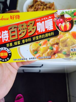神器…味道还好…我喜欢味道重的…土豆沙了后放入咖喱块儿…我放了一整盒…