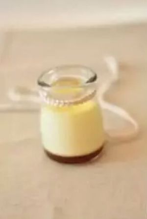 先熬制焦糖,把60g白糖与20g水放在锅里加热熬制焦糖,当颜色变成金黄色时,离火,观察颜色,当颜色比照片中颜色浅的时候,倒入布丁模子中。(由于照片拍摄于晚上,所以焦糖颜色看着比实际略深);