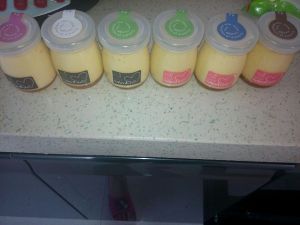 将准备好的杯子放进锅里开中火蒸十~十五分钟(有条件的话用锡纸封口在蒸,据说不会有水走进瓶子里)开锅取出瓶子待凉就可以放冰箱里了。冻过后口感更好味