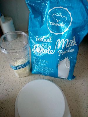 我用的是澳大利亚与爱他美师出同门的Cowala成人奶粉,因为这样可以省事,不用再微波融化黄油,也不用再加热使白糖融化。