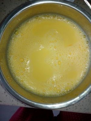 我用的是妈妈给的土鸭蛋,营养比鸡蛋高,但是如果不吃鸭蛋的小伙伴还是考虑用鸡蛋吧,打散后备用,颜色是不是比鸡蛋更诱人呢?