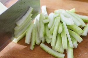 青椒、蒜,碾成碎末,加入西瓜皮中;
