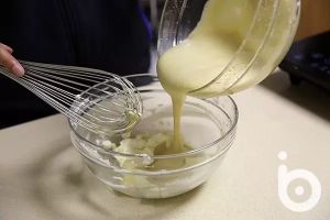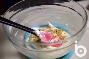 加热好的吉利丁溶液倒入糊糊中搅拌均匀