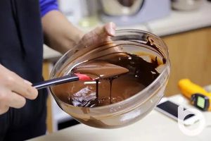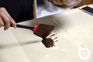 ②在巧克力中加入一些没有用过的新巧克力,轻柔的搅拌巧克力糊使其降温至27-28度,再回温至31-32度之间使用